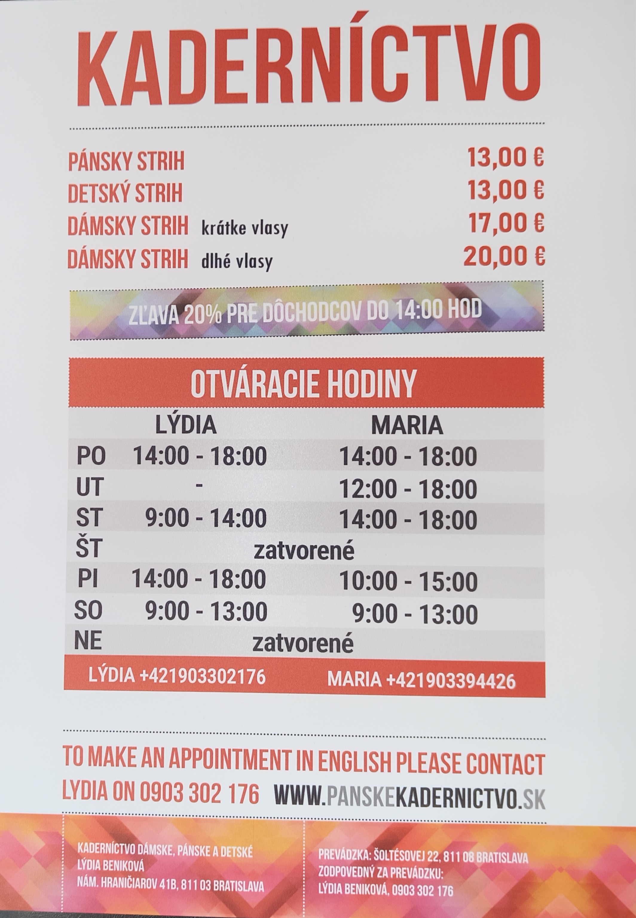 Dámske, pánske a detské kaderníctvo Šoltésovej 22 - Staré mesto - Bratislava